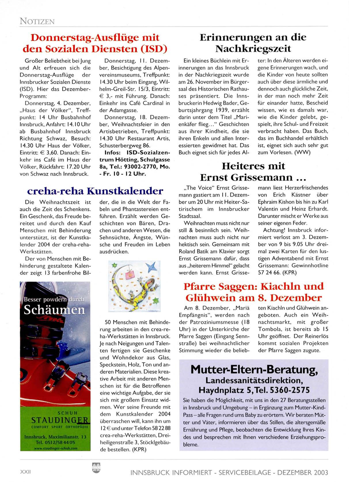 INNSBRUCK INFORMIERT - SERVICEBEILAGE - DEZEMBER 2003