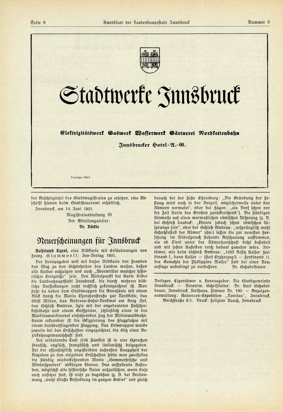 Anichstraste 8 1. Druck: Kolizian Rauch, Innsbruck.