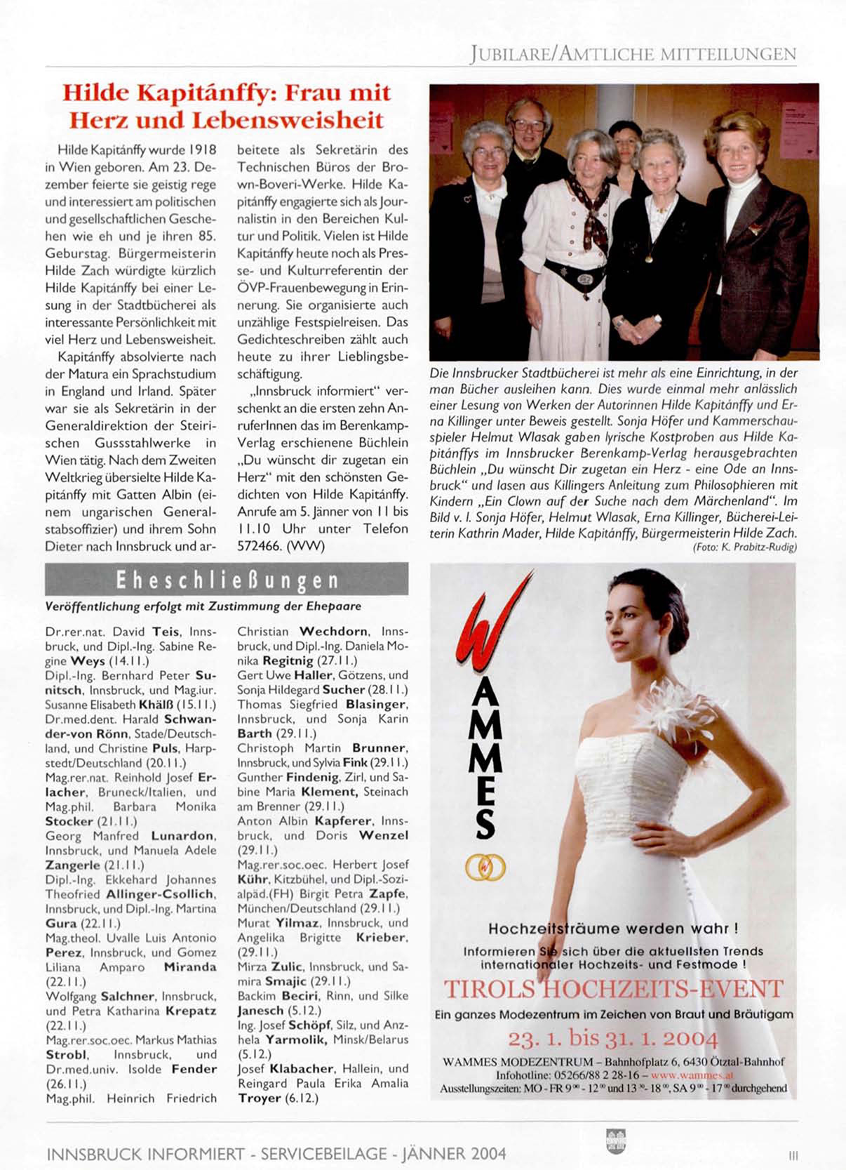 INNSBRUCK INFORMIERT - SERVICEBEILAGE - JÄNNER 2004