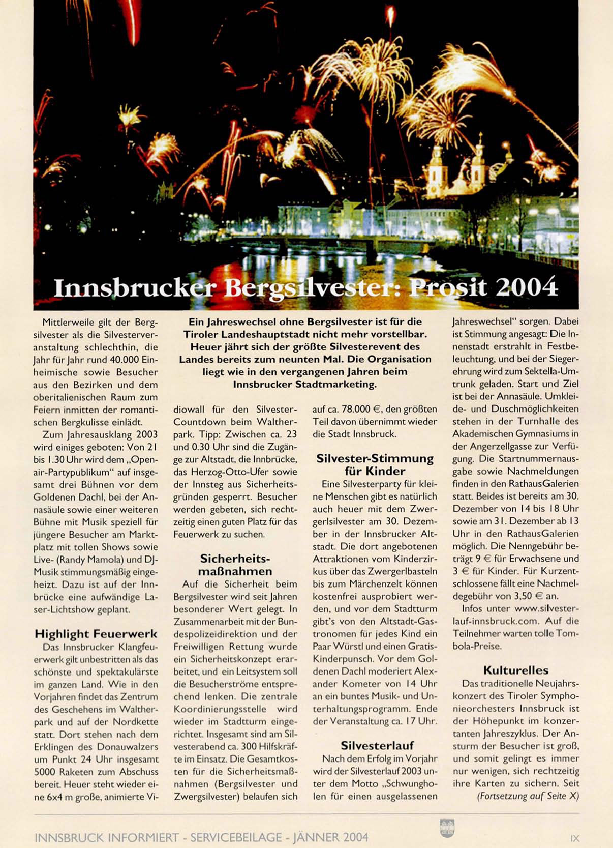 INNSBRUCK INFORMIERT - SERVICEBEILAGE -JÄNNER 2004