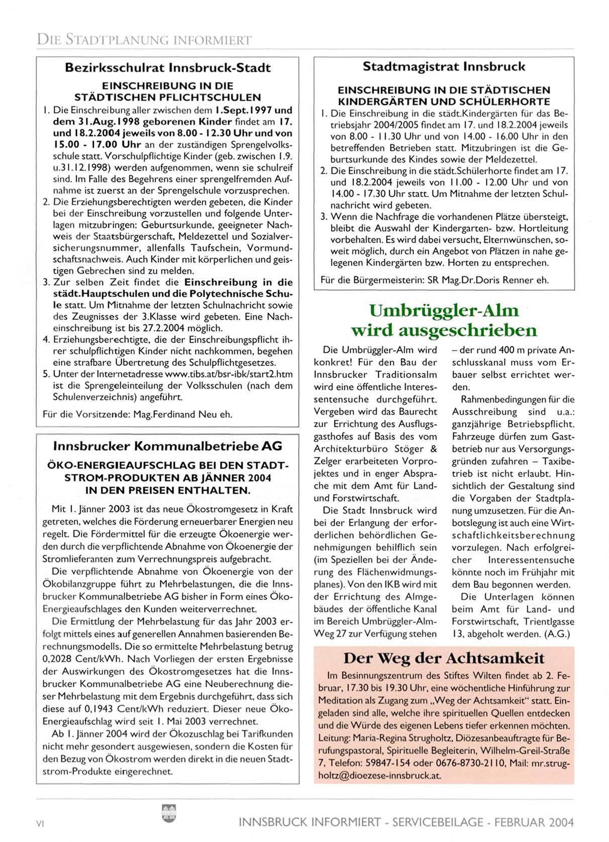 INNSBRUCK INFORMIERT - SERVICEBEILAGE - FEBRUAR 2004