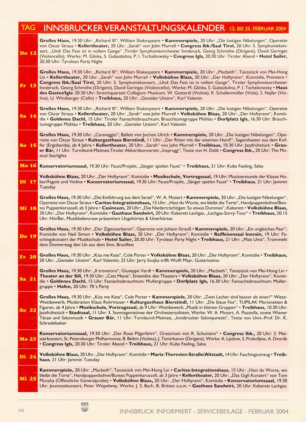 INNSBRUCK INFORMIERT - SERVICEBEILAGE - FEBRUAR 2004
