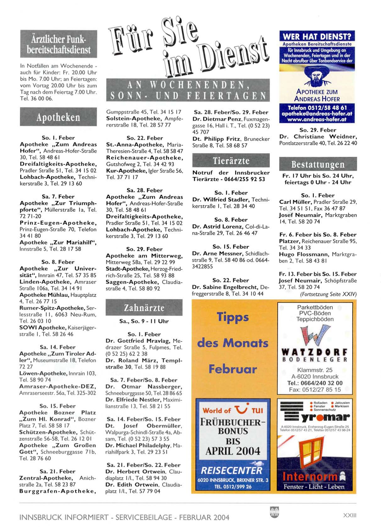 INNSBRUCK INFORMIERT - SERVICEBEILAGE - FEBRUAR 2004