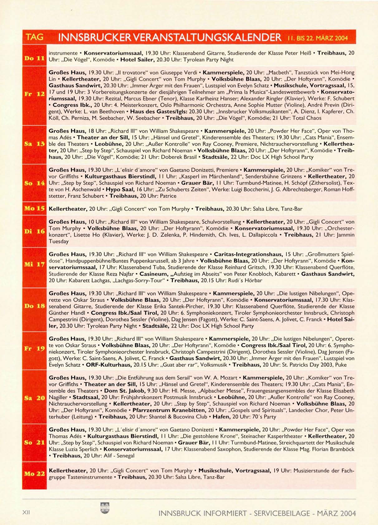INNSBRUCK INFORMIERT - SERVICEBEILAGE - MÄRZ 2004