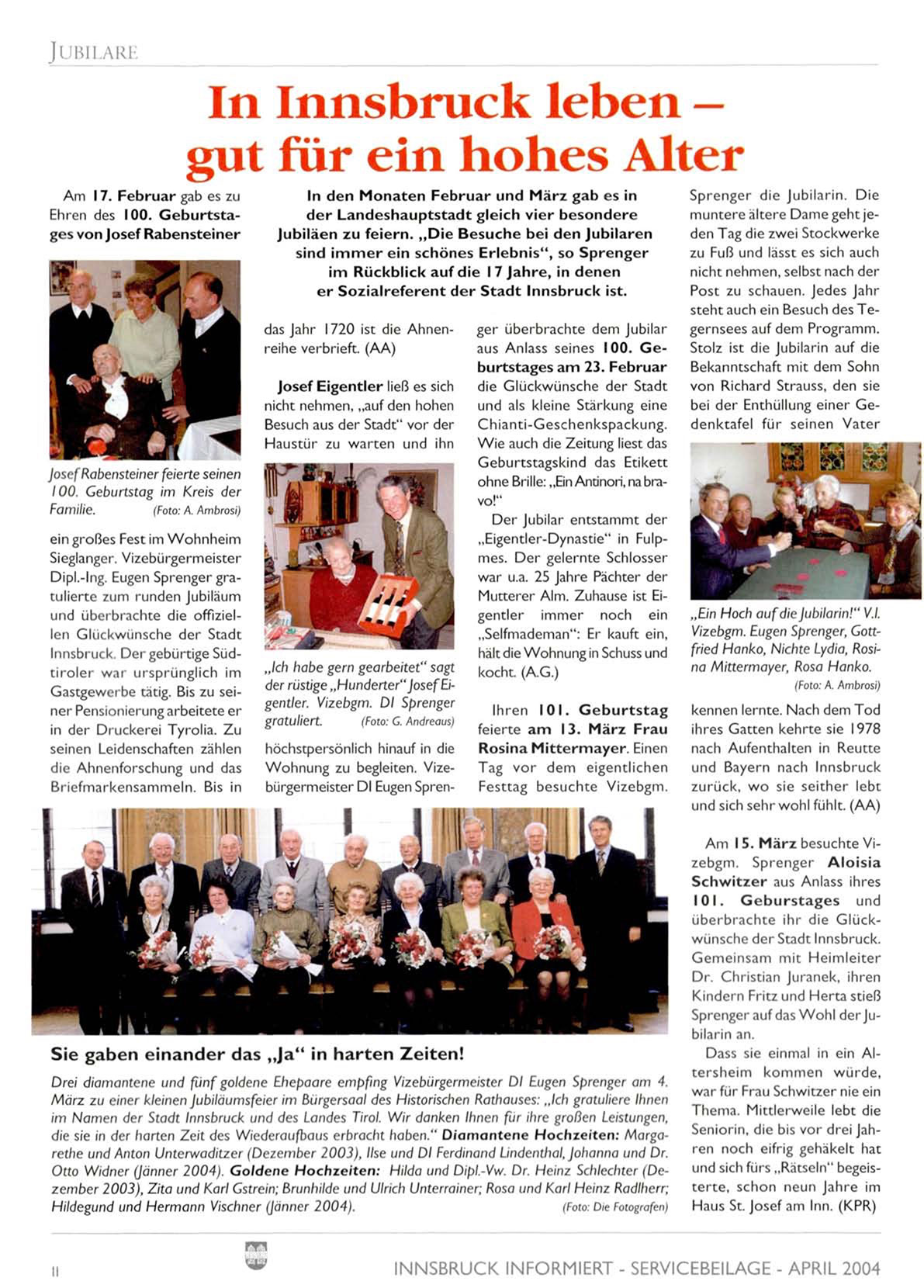 INNSBRUCK INFORMIERT - SERVICEBEILAGE - APRIL 2004