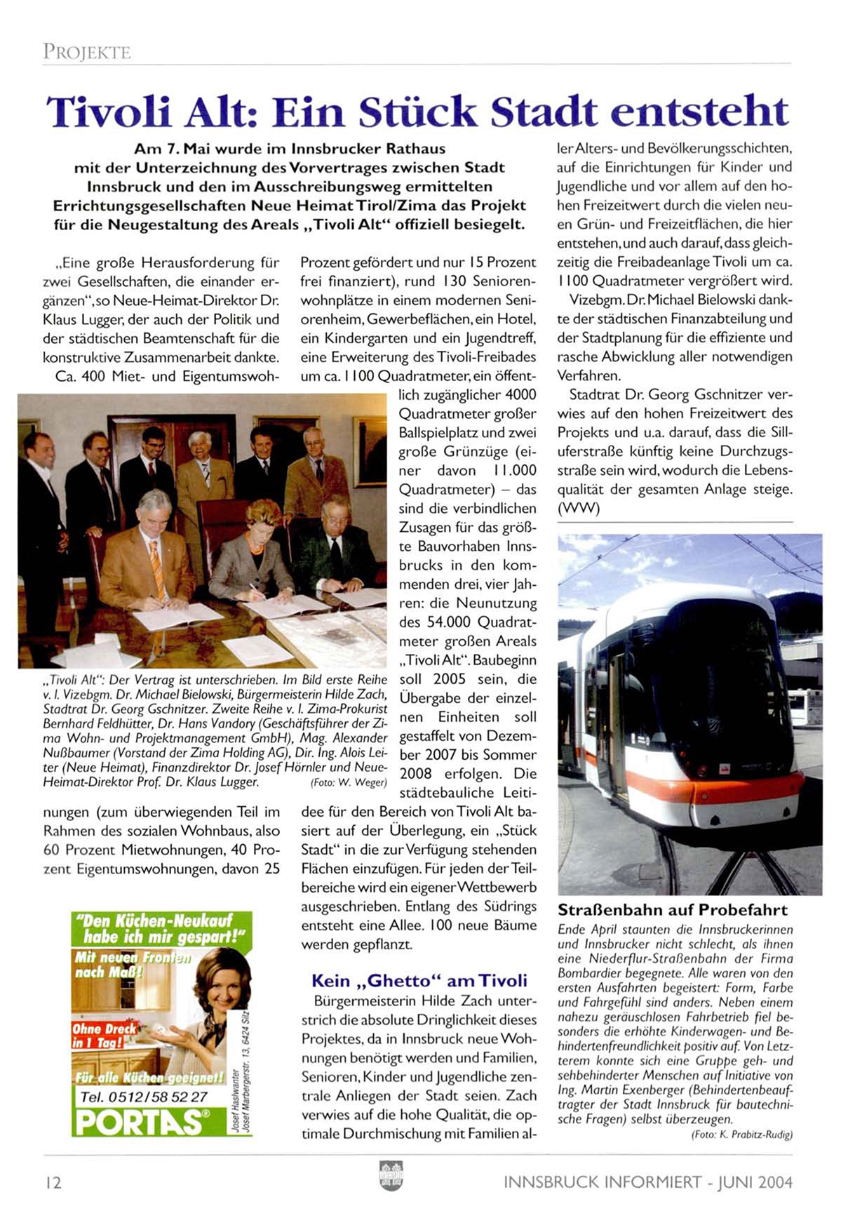 für die N e u g e s t a l t u n g des Areals „ T i v o l i A l t " offiziell besiegelt.
