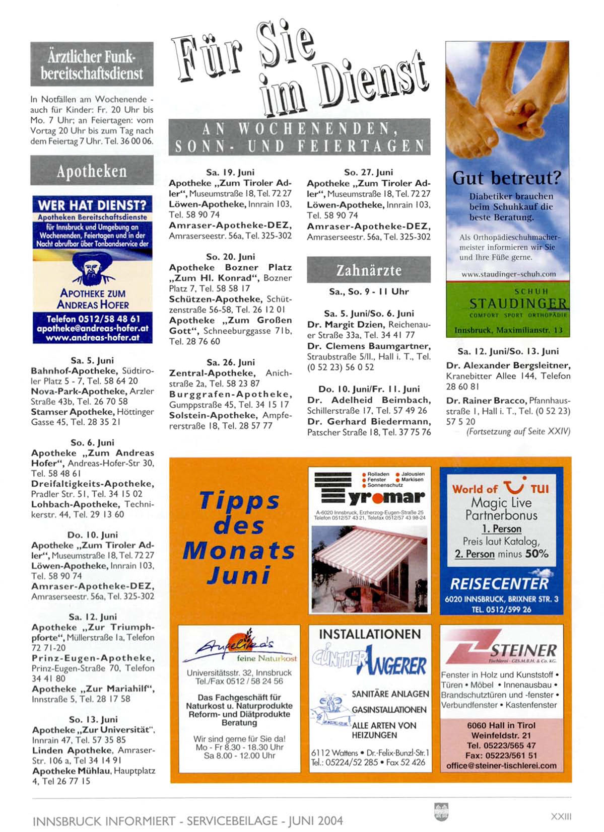 INNSBRUCK INFORMIERT - SERVICEBEILAGE -JUNI 2004