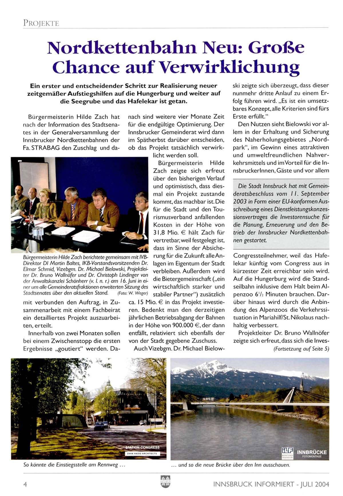 dass im Sinne der A b s i c h e Bürgermeisterin Hilde Zach berichtete gemeinsam mit IVB- r u n g für die Z u k u n f t alle A n Direktor DI Martin Baltes, IKB-Vorstandsvorsitzenden Dr. lagen im Eigentum d e r Stadt