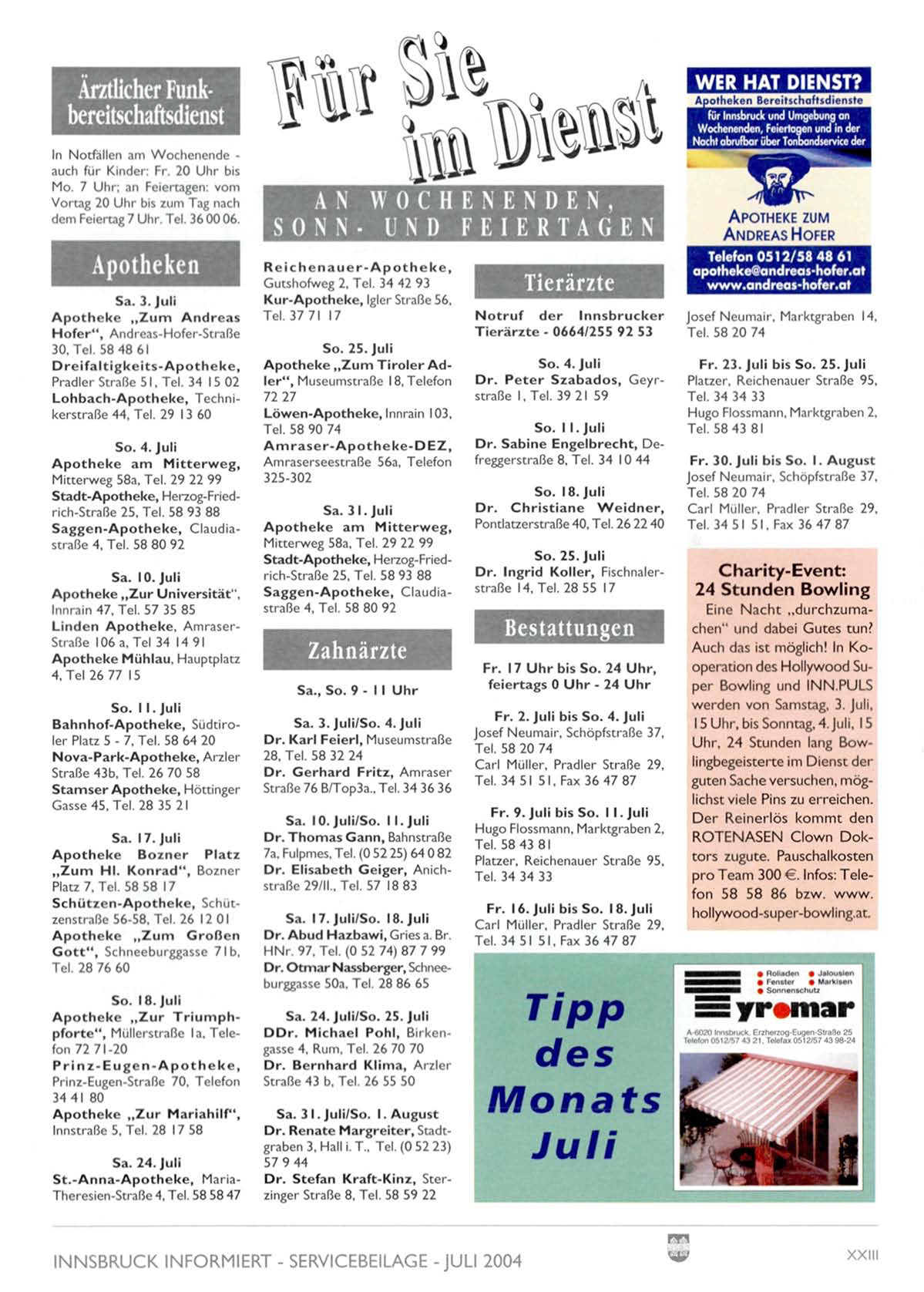 INNSBRUCK INFORMIERT - SERVICEBEILAGE -JULI 2004