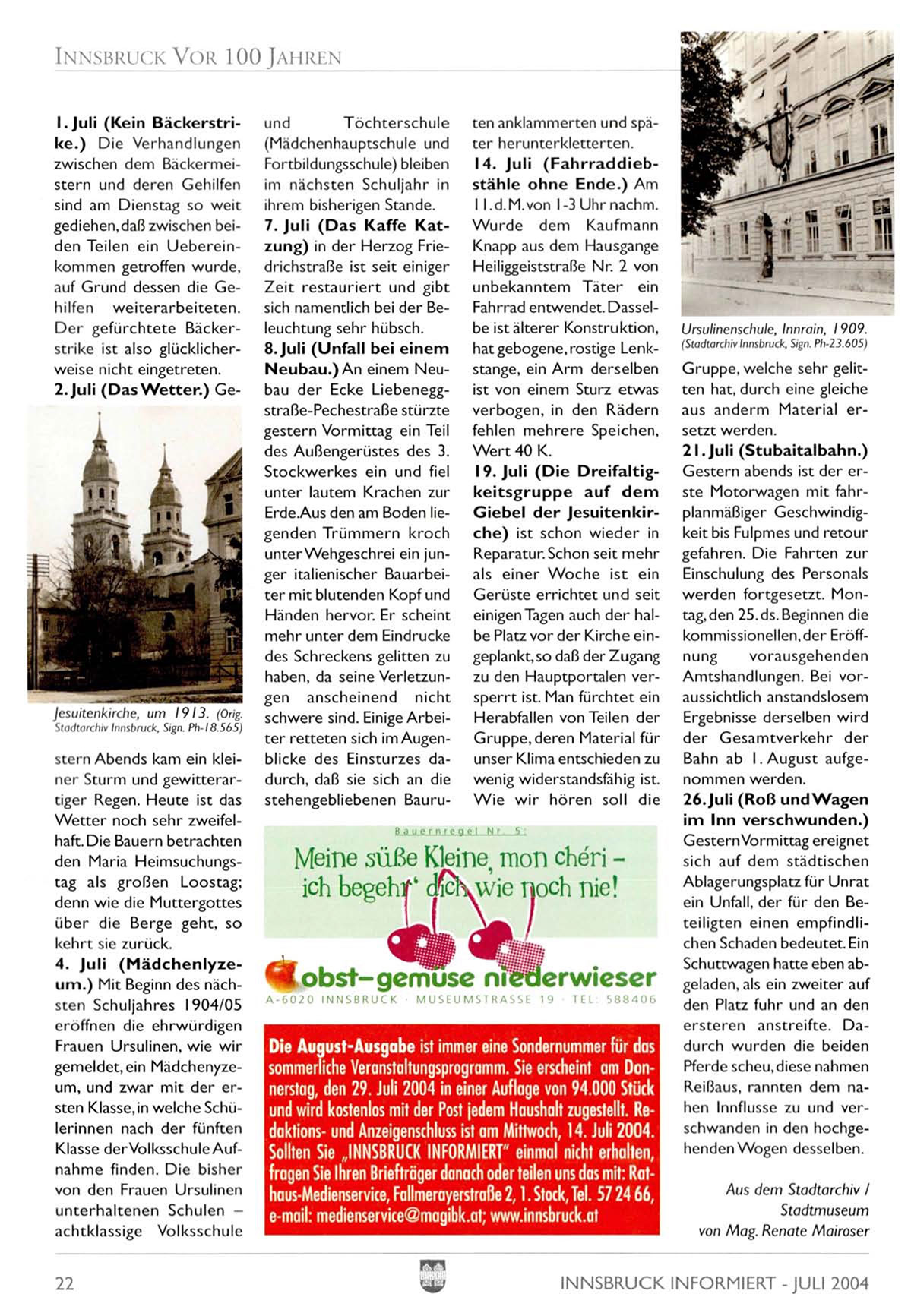 I N N S B R U C K I N F O R M I E R T - JULI 2004