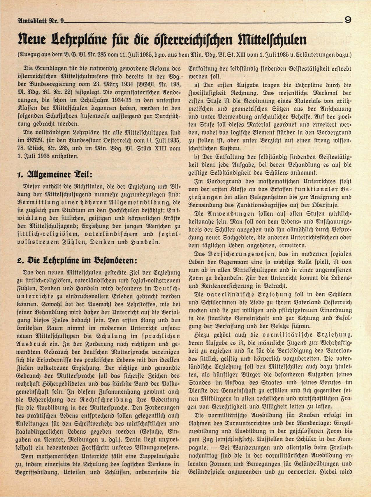 Dieser enthält die Richtlinien, die der Erziehung und Bildung der Mittelschuljugend nunmehr zugrundezulegen sind: