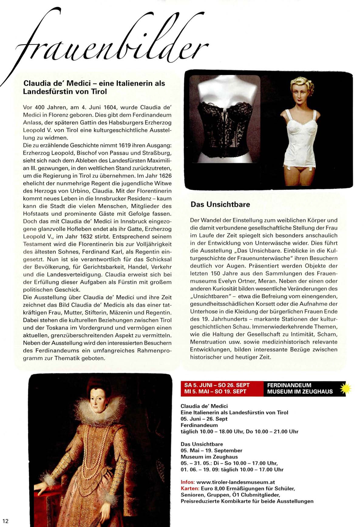 letzten 150 Jahre aus den S a m m l u n g e n des Frauenm u s e u m s Evelyn Ortner, M e r a n . Neben der einen oder