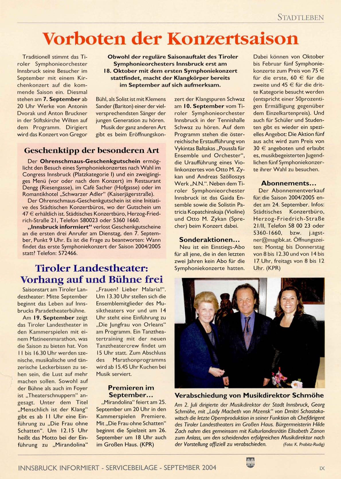 INNSBRUCK INFORMIERT - SERVICEBEILAGE - SEPTEMBER 2004