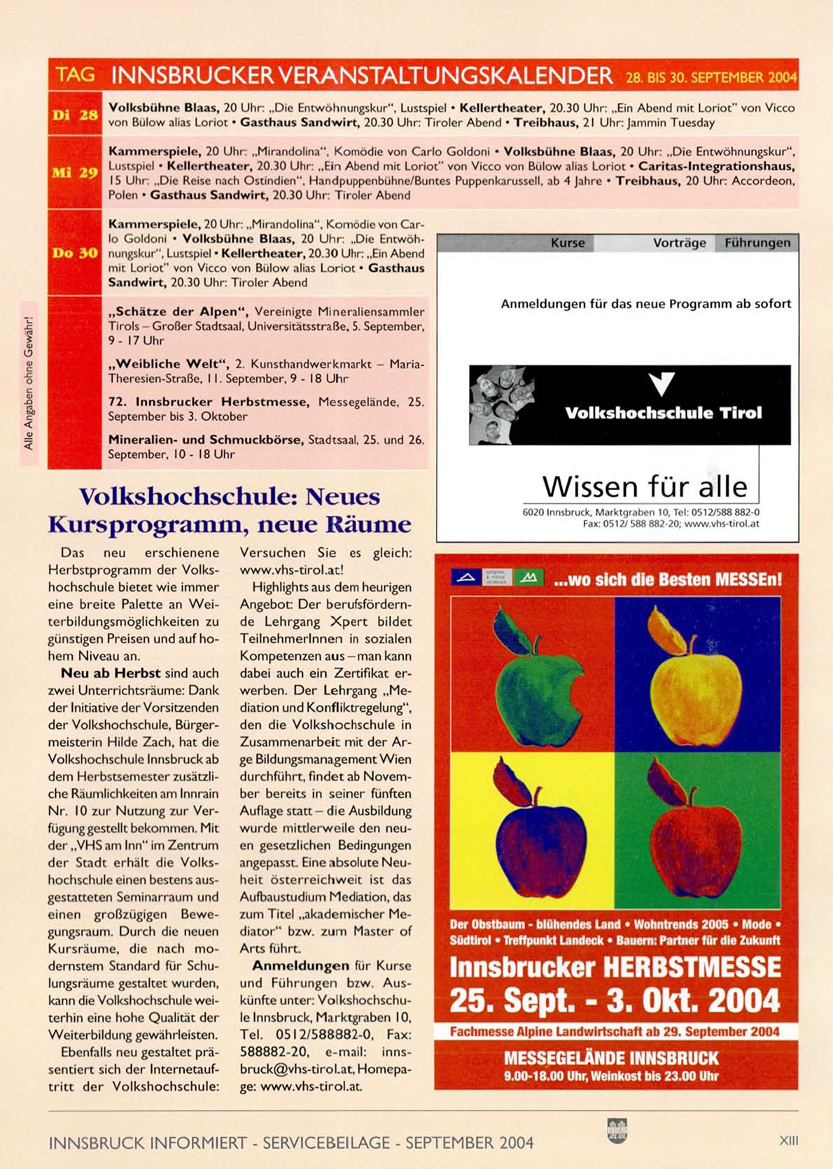 INNSBRUCK INFORMIERT - SERVICEBEILAGE - SEPTEMBER 2004