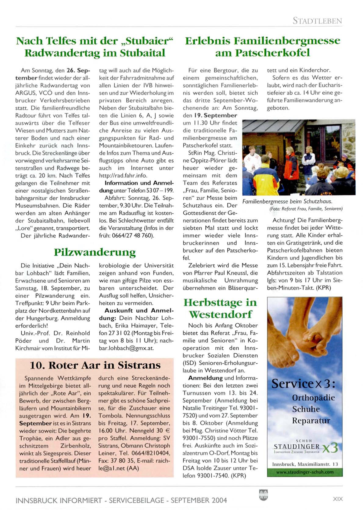 INNSBRUCK INFORMIERT - SERVICEBEILAGE - SEPTEMBER 2004