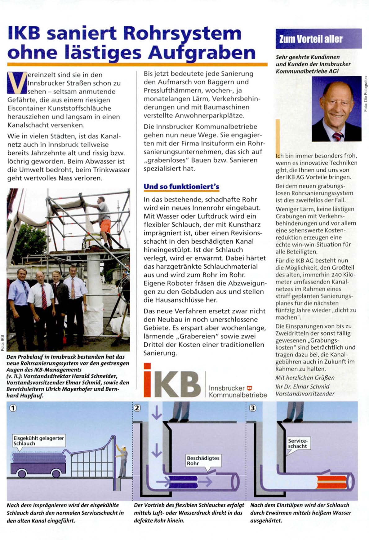 gehen nun neue Wege. Sie engagierten mit der Firma Insituform ein Rohrsanierungsunternehmen, das sich auf