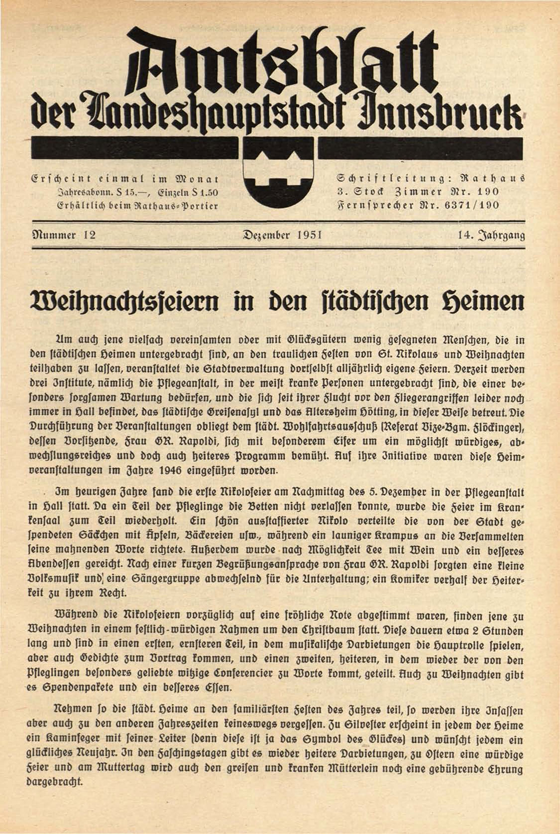 immer in hall befindet, das städtische Greisenasul und das klltersheim hotting, in dieser Weise betreut.Die