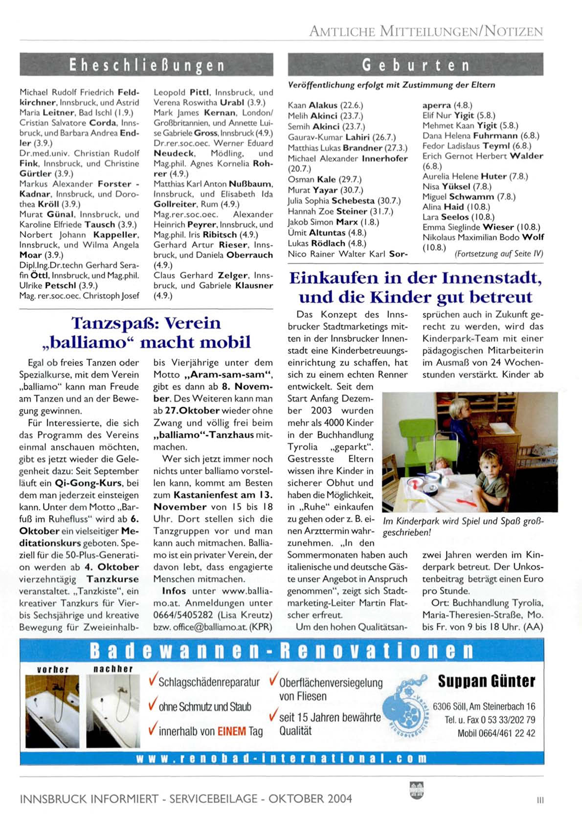 INNSBRUCK INFORMIERT - SERVICEBEILAGE - OKTOBER 2004