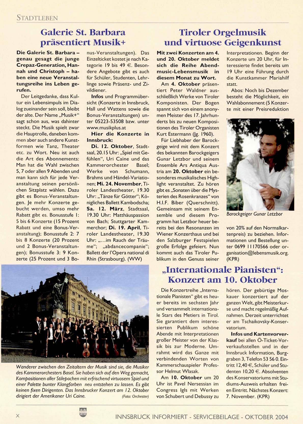 INNSBRUCK INFORMIERT - SERVICEBEILAGE - OKTOBER 2004