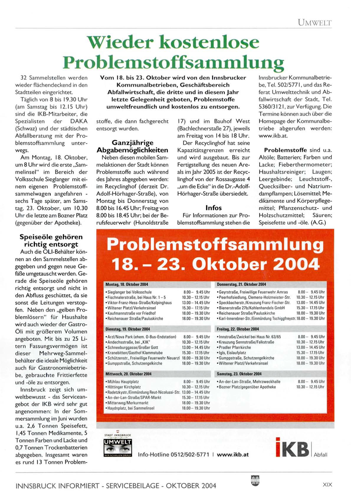 INNSBRUCK INFORMIERT - SERVICEBEILAGE - OKTOBER 2004