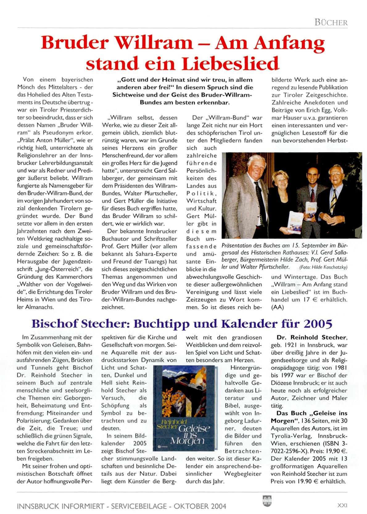 Bischof Stecher: Buchtipp u n d Kalender für 2005