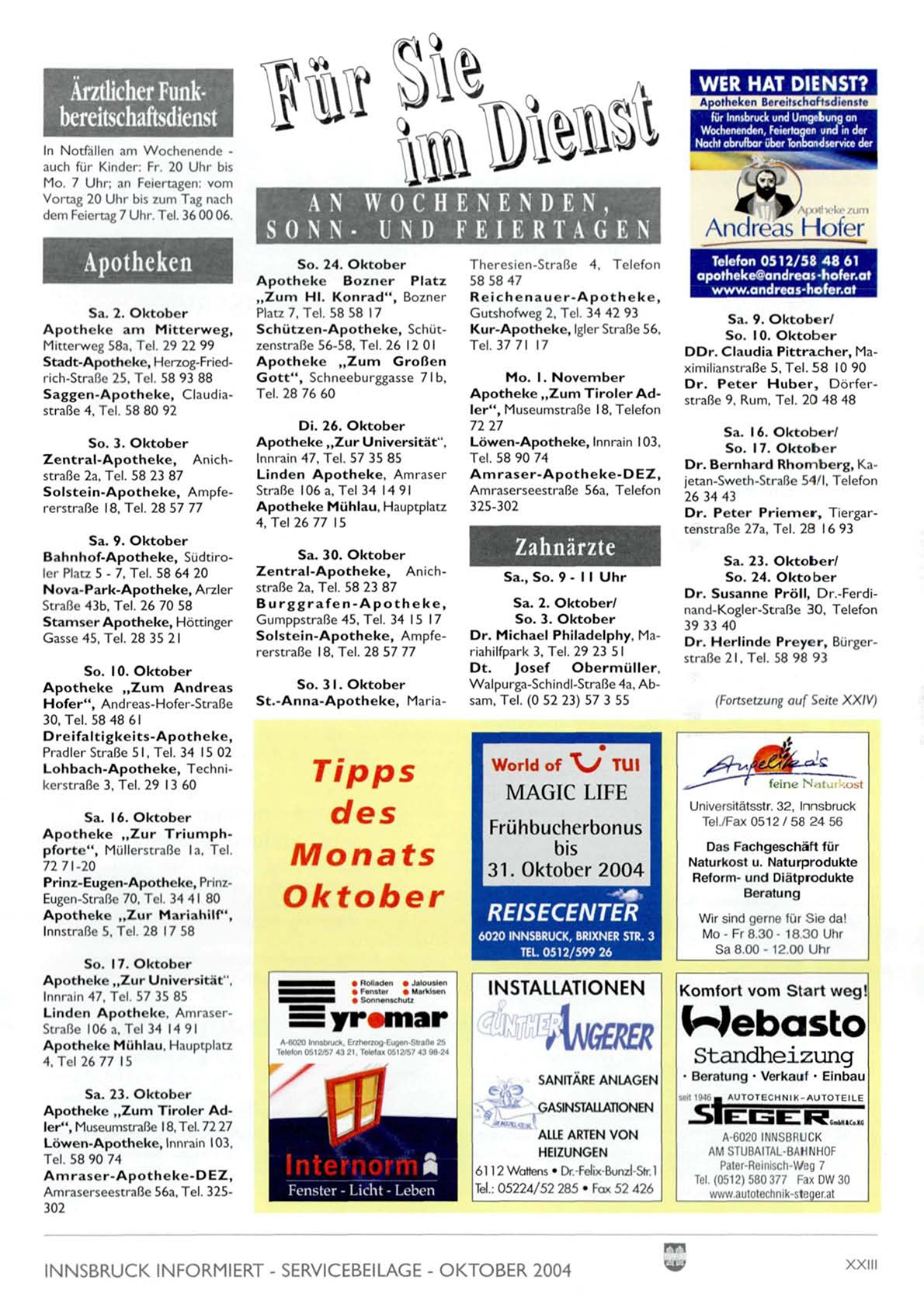 INNSBRUCK INFORMIERT - SERVICEBEILAGE - OKTOBER 2004