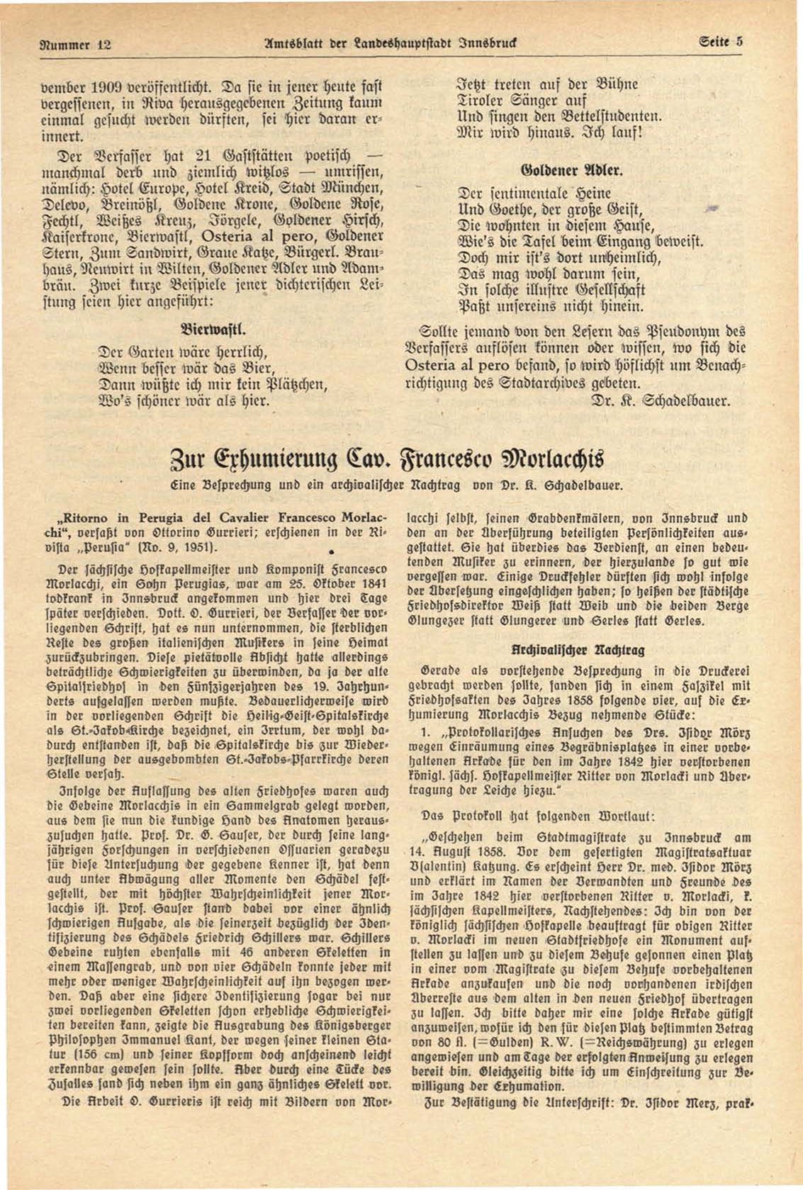 auch unter klbwägung aller Momente den Schädel festgestellt, der mit höchster Wahrscheinlichkeit jener Morlacchis ist. Prof. Sauser stand dabei vor einer ähnlich