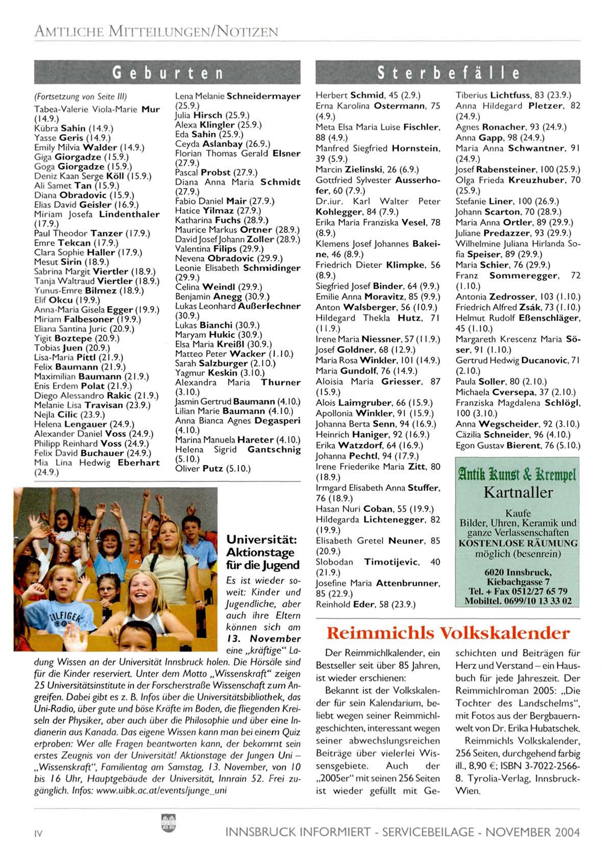 INNSBRUCK INFORMIERT - SERVICEBEILAGE - NOVEMBER 2004