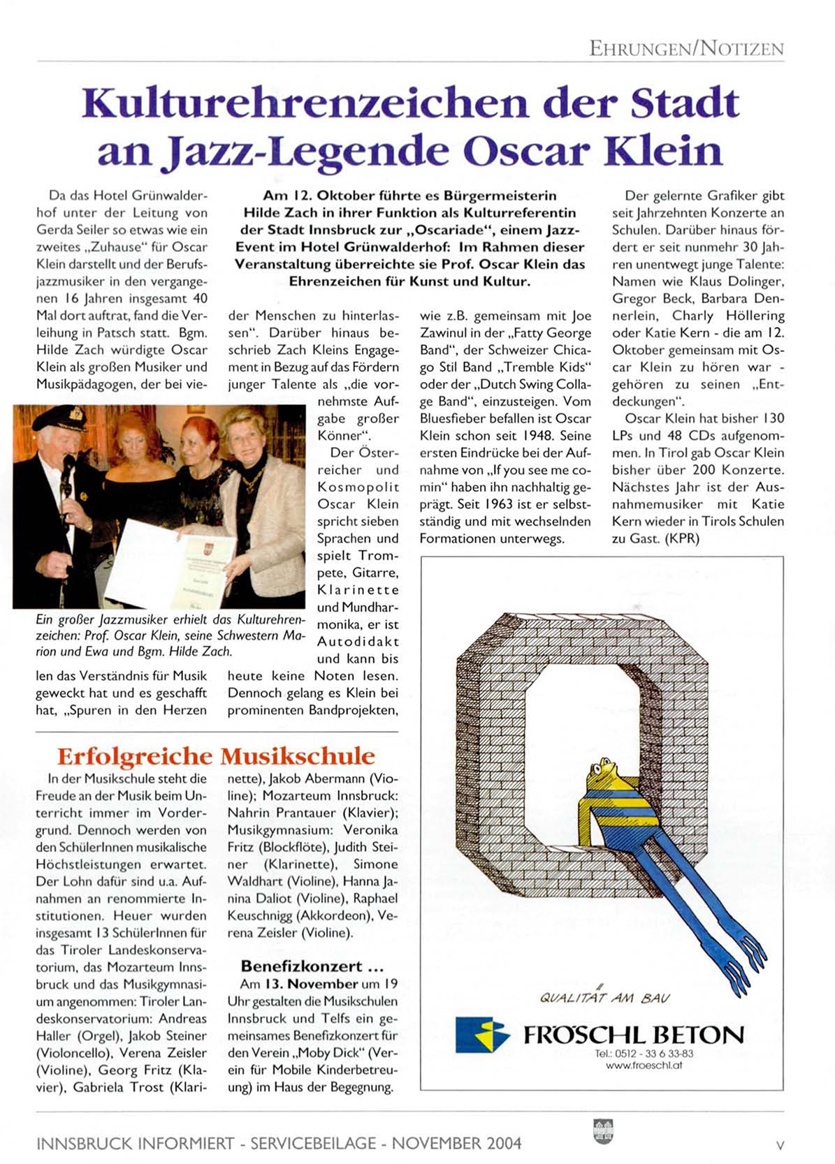 d e r S t a d t I n n s b r u c k z u r „ O s c a r i a d e " , e i n e m JazzEvent i m H o t e l Grünwalderhof: I m R a h m e n dieser