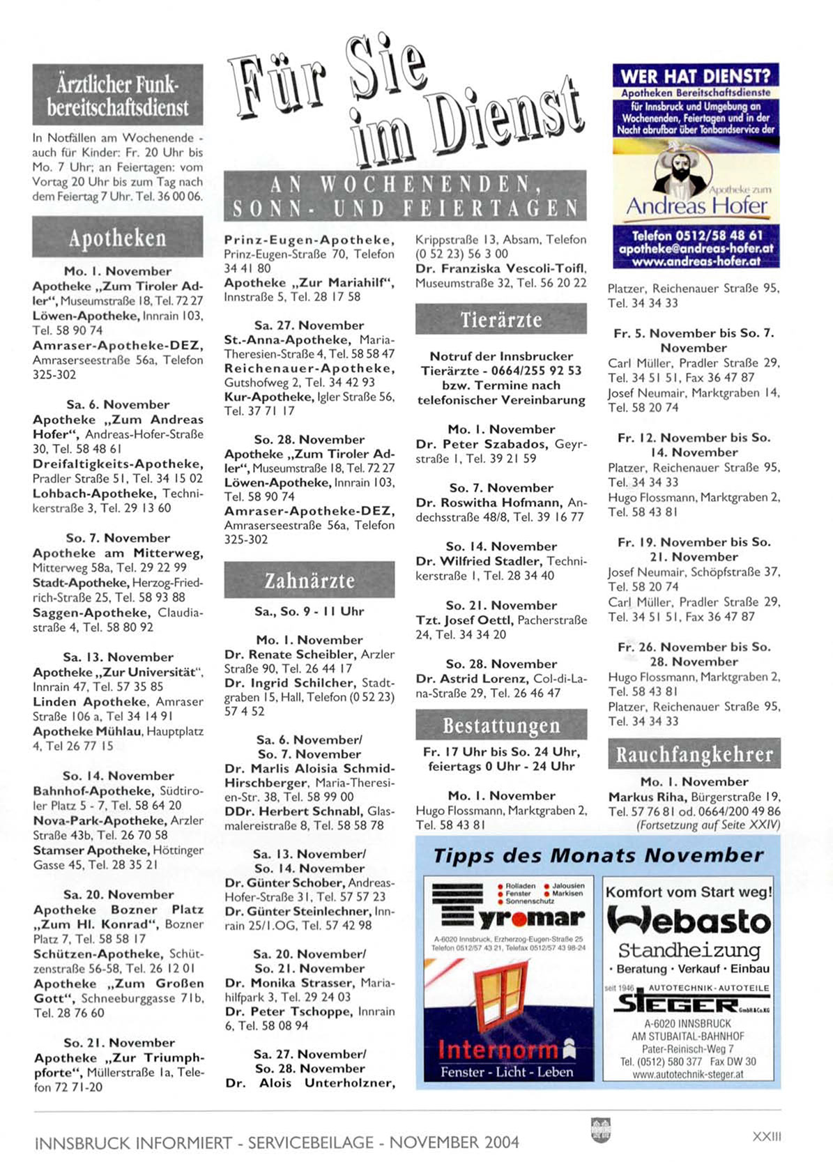 INNSBRUCK INFORMIERT - SERVICEBEILAGE - NOVEMBER 2004