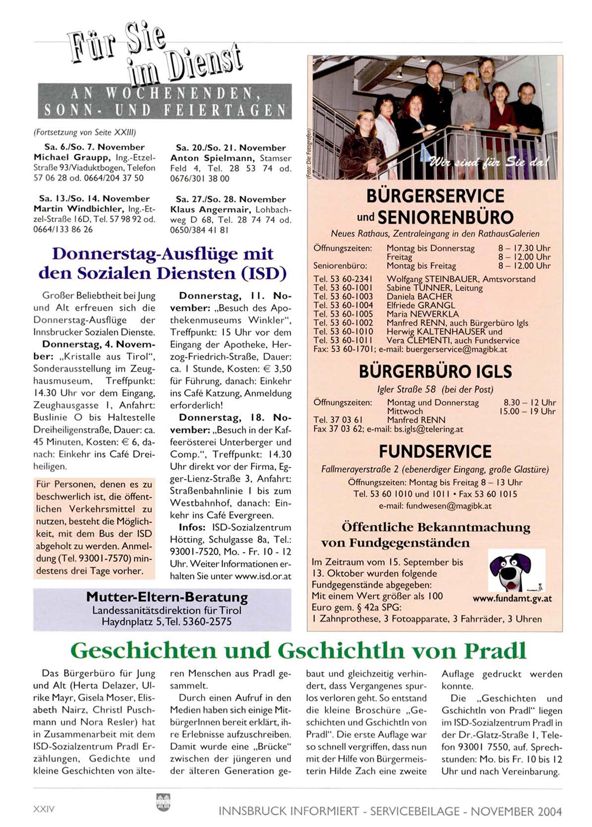 INNSBRUCK INFORMIERT - SERVICEBEILAGE - NOVEMBER 2004