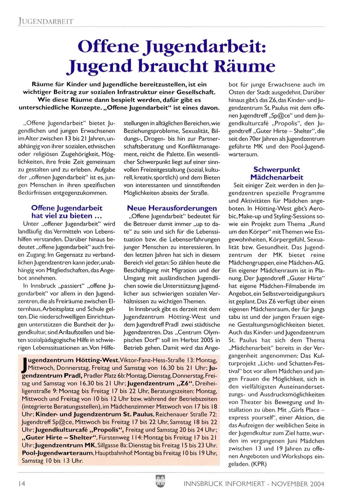 INNSBRUCK INFORMIERT - NOVEMBER 2004