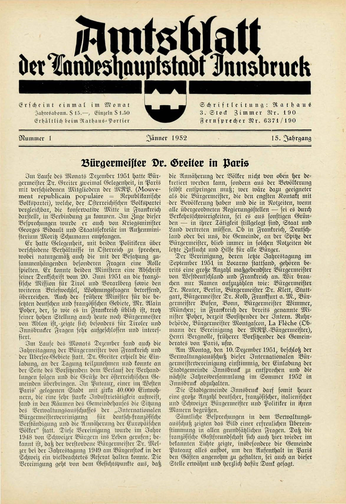 I m Lanfe des Monats Dezember 1951 hatte Bürgermeister D r . Grciter zweimal Gelegenheit, in Paris