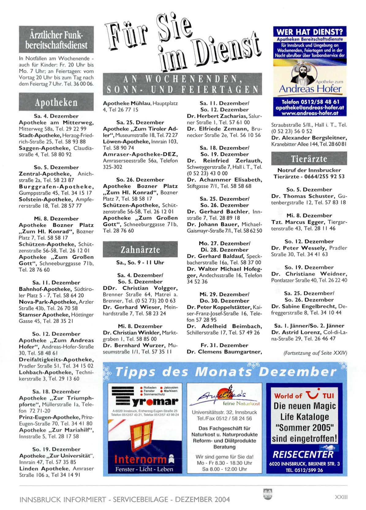 INNSBRUCK INFORMIERT - SERVICEBEILAGE - DEZEMBER 2004
