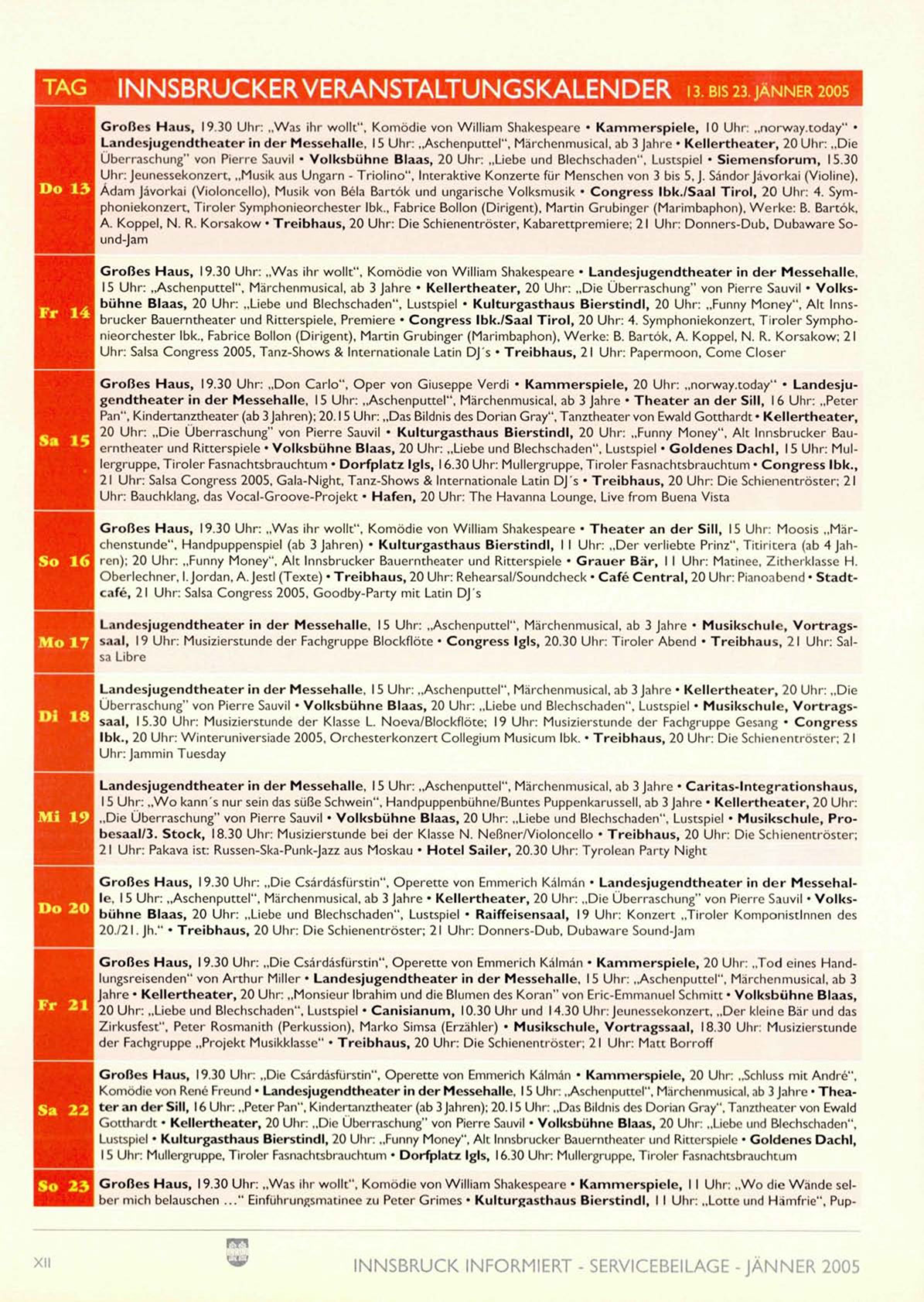 INNSBRUCK INFORMIERT - SERVICEBEILAGE -JANNER 2005