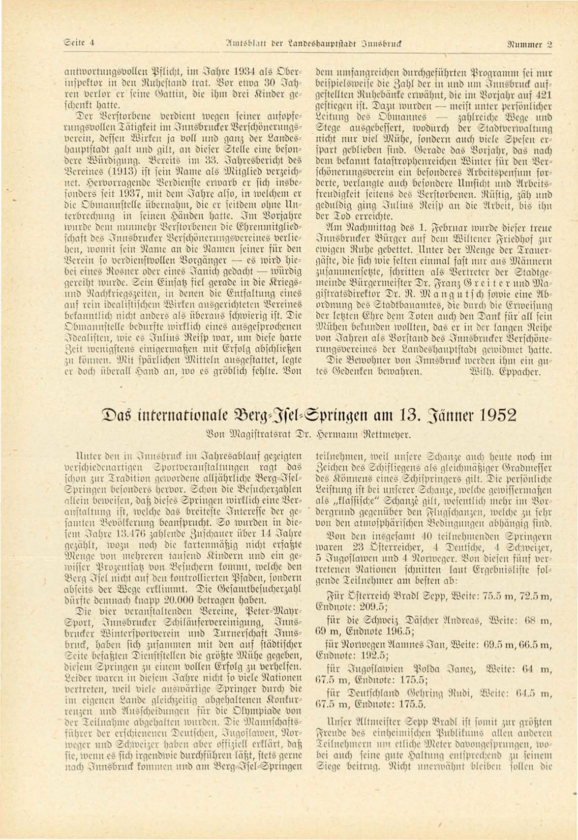 Das internationale Berg Isel springen am 13. Jänner 1952
