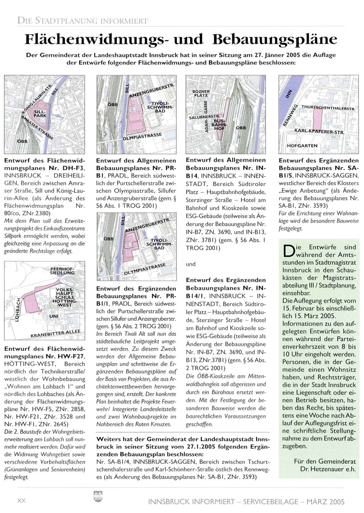 D e r G e m e i n d e r a t d e r L a n d e s h a u p t s t a d t I n n s b r u c k h a t in s e i n e r S i t z u n g a m 27. J ä n n e r 2005 d i e A u f l a g e
