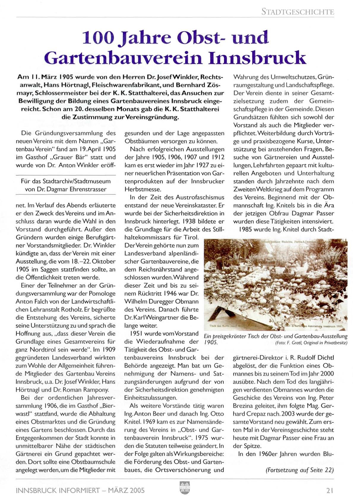 Tätigkeit des Obst- und Gartenbauvereins Innsbruck bei der