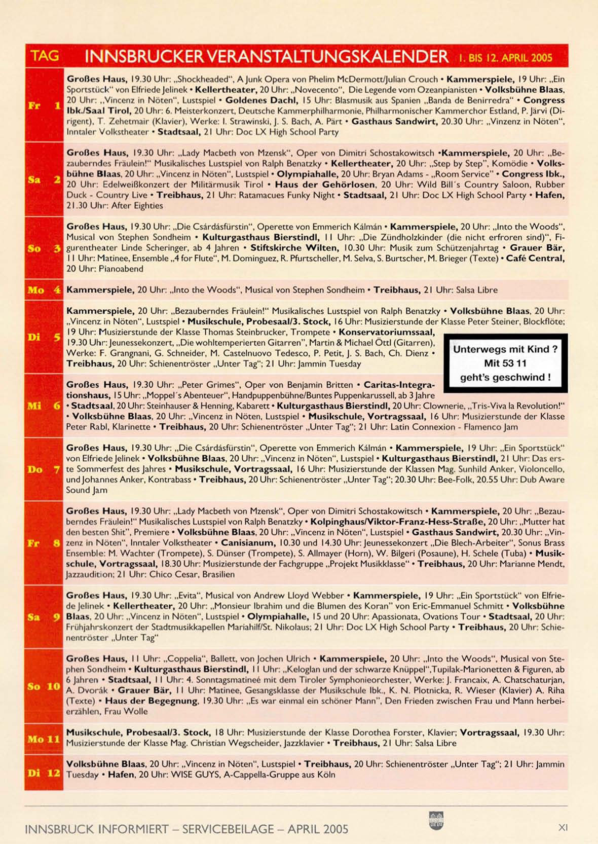 INNSBRUCK INFORMIERT - SERVICEBEILAGE - APRIL 2005