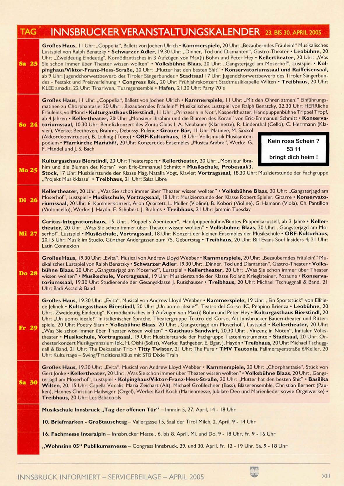 INNSBRUCK INFORMIERT - SERVICEBEILAGE - APRIL 2005