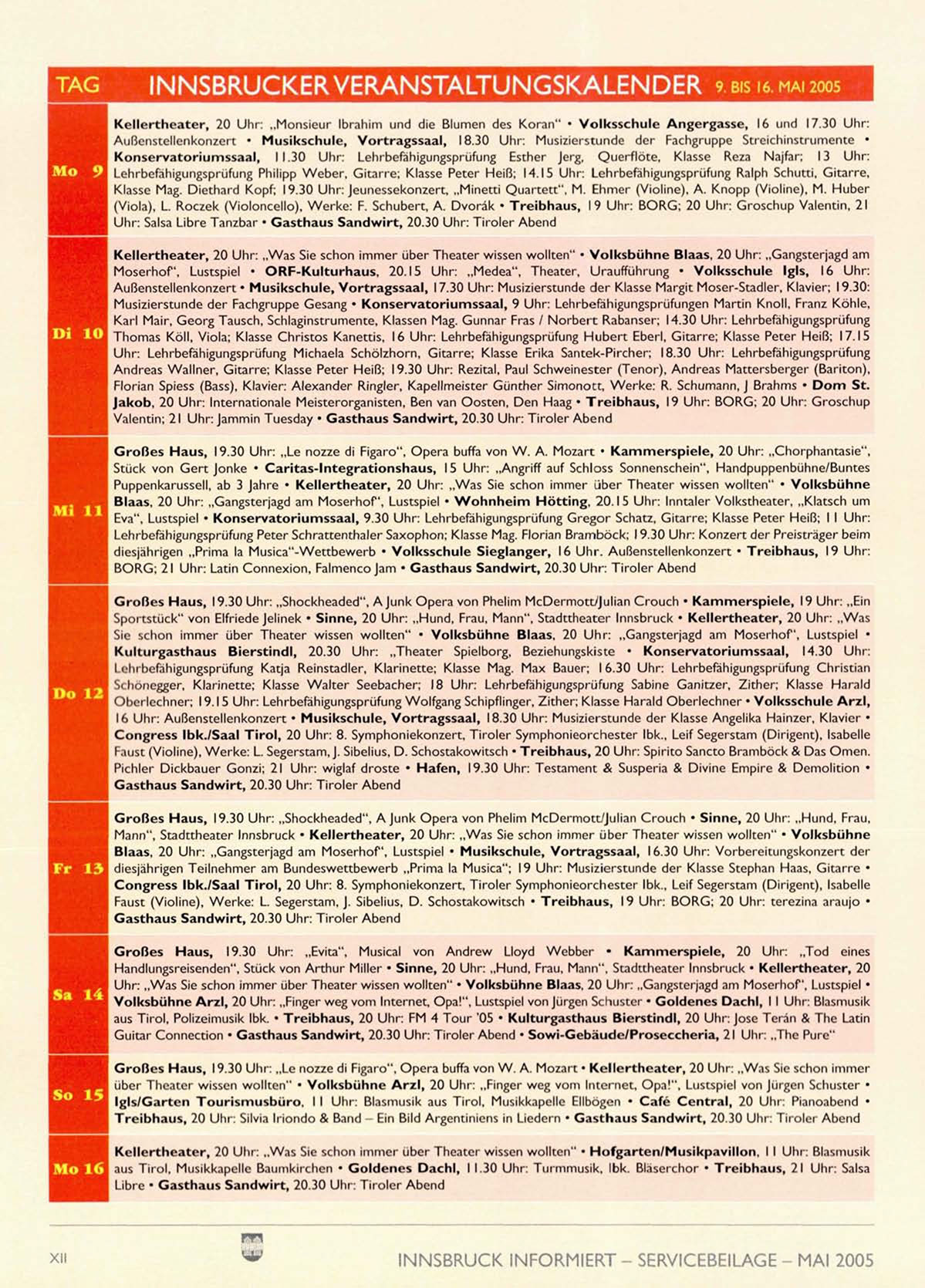 INNSBRUCKER VERANSTALTUNGSKALENDER 9. BIS I& MAI 2005