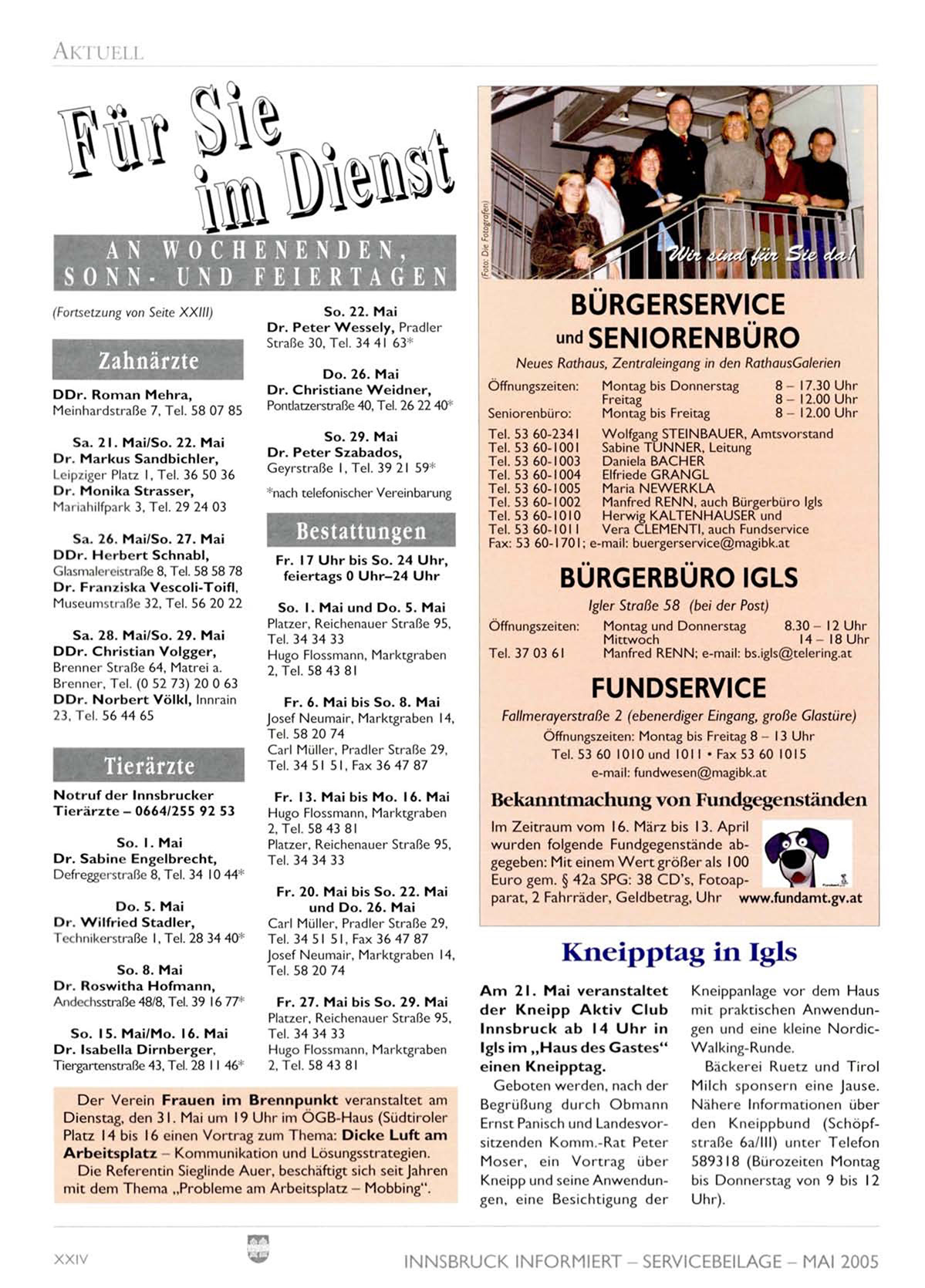 INNSBRUCK INFORMIERT - SERVICEBEILAGE - MAI 2005