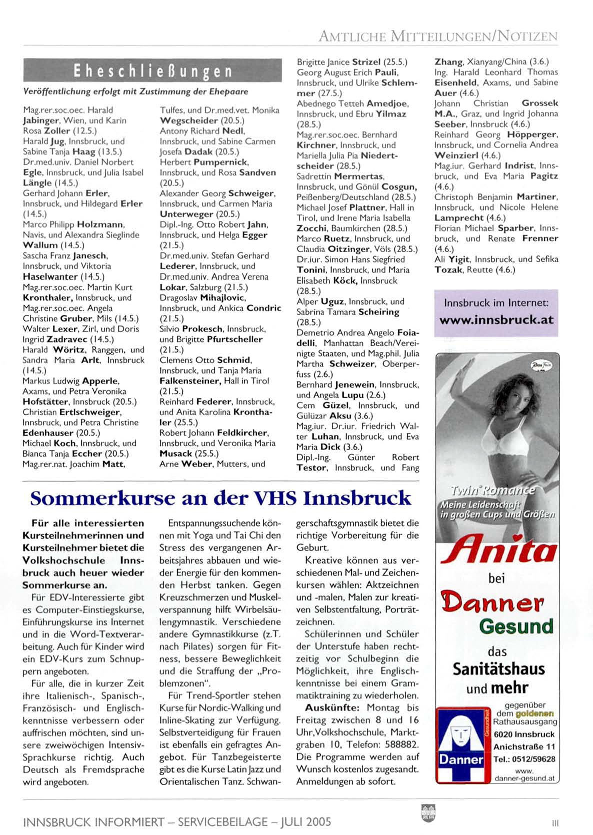 INNSBRUCK INFORMIERT-SERVICEBEILAGE-JULI 2005