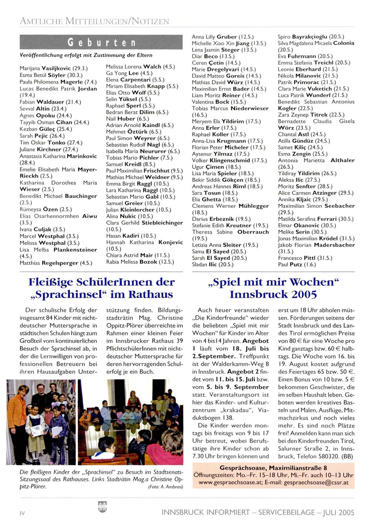 INNSBRUCK INFORMIERT - SERVICEBEILAGE -JULI 2005
