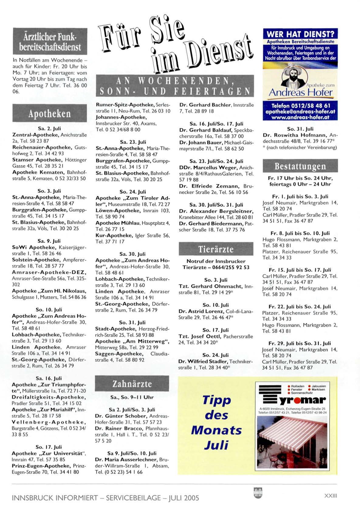 INNSBRUCK INFORMIERT - SERVICEBEILAGE -JULI 2005