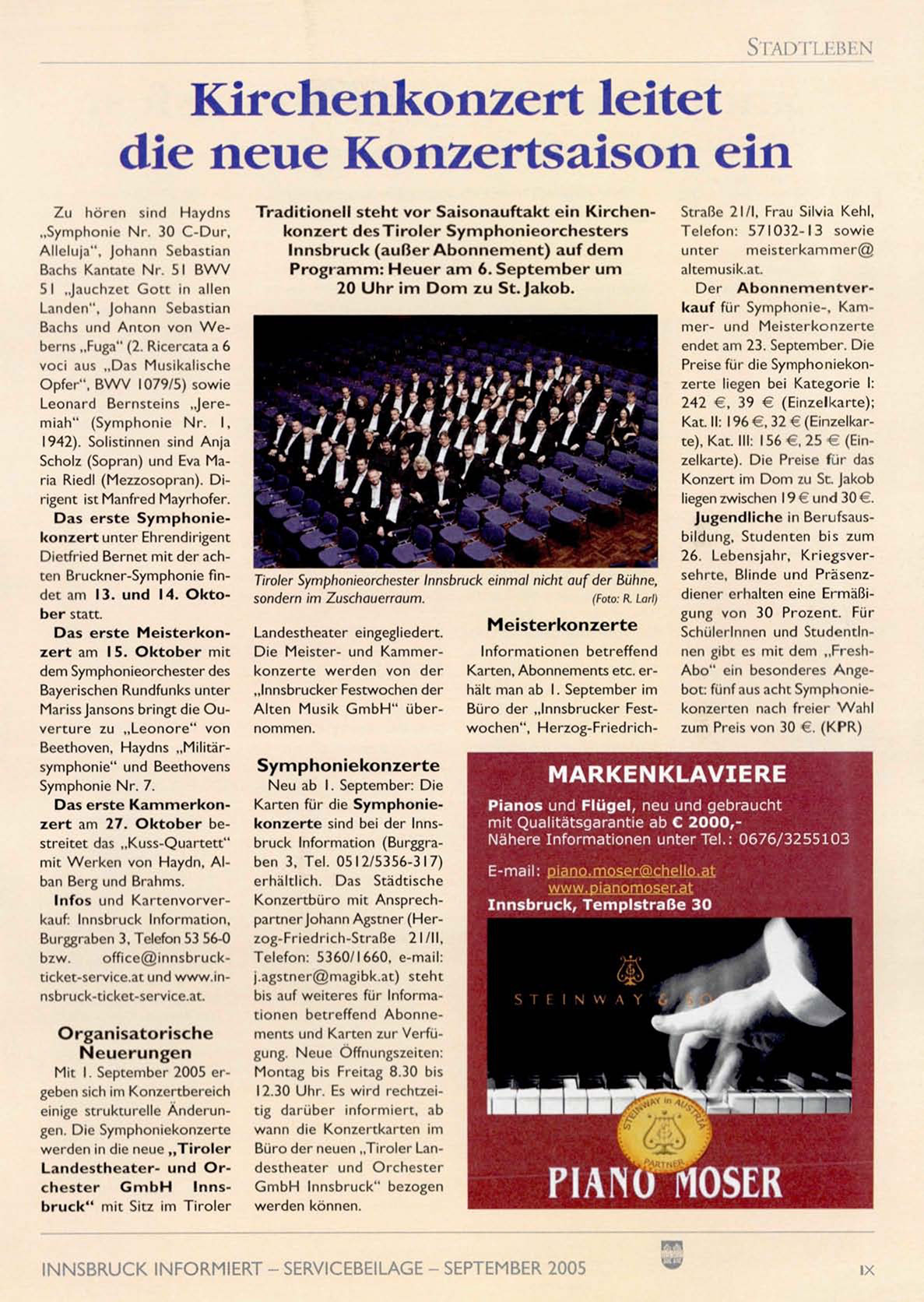 INNSBRUCK INFORMIERT - SERVICEBEILAGE - SEPTEMBER 2005