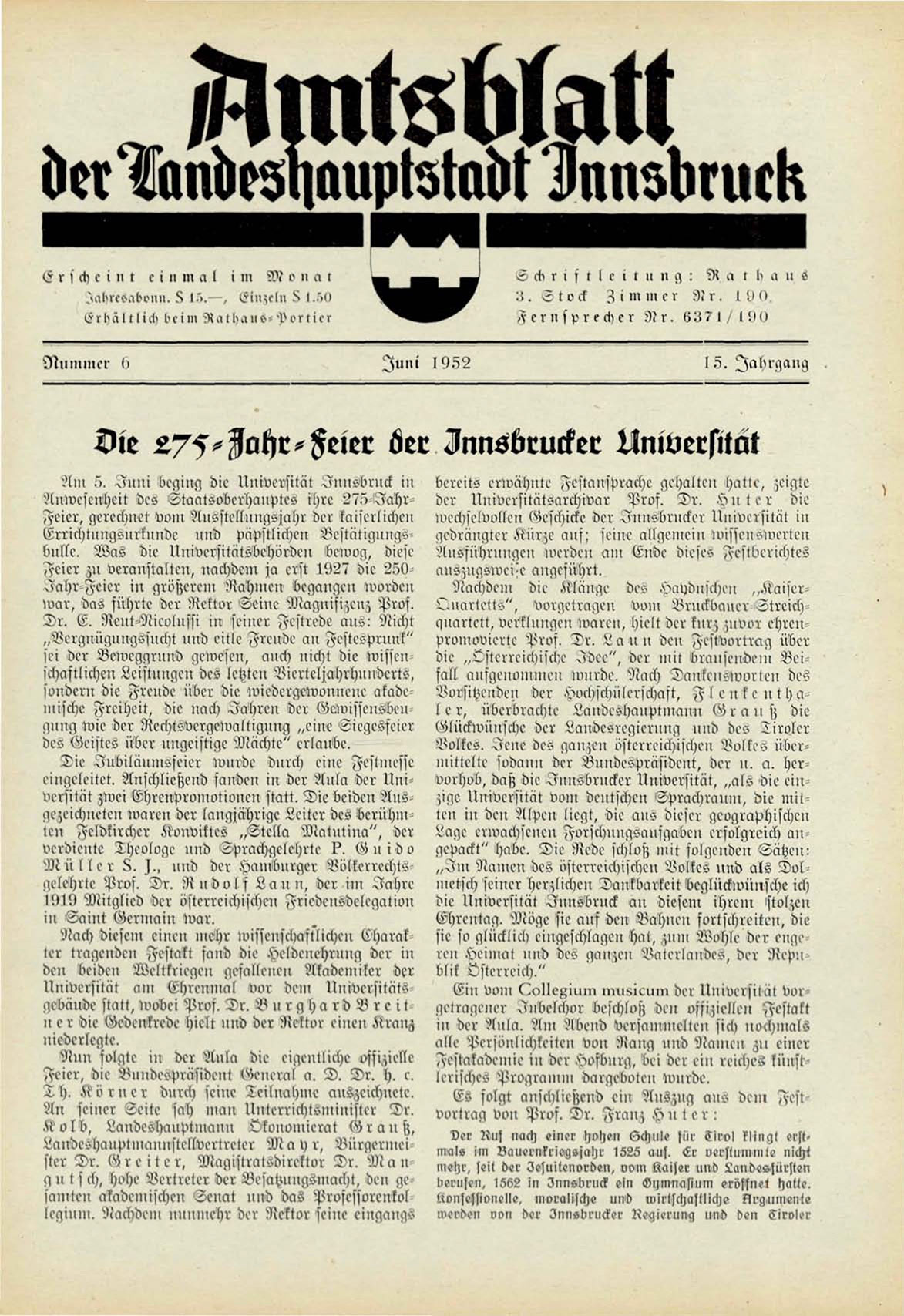 eingeleitet. Anschließend fanden in der Aula der Universität zwei Ehrenpromotionen statt. Die beiden Ausgezeichneten waren der langjährige Leiter des berühmten Fcldtircher Konviktes „Stella M a t u t i n a " , der