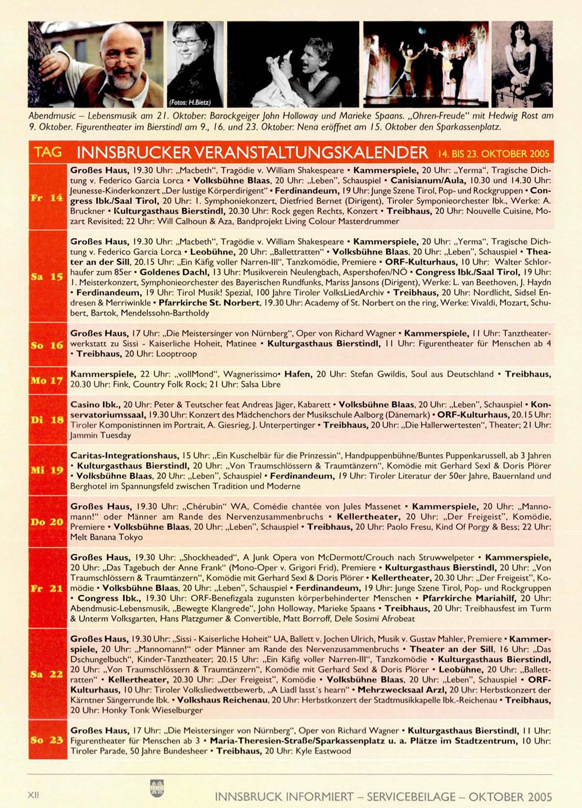 INNSBRUCKERVERANSTALTUNGSKALENDER M.BIS23.OKTOBER2005