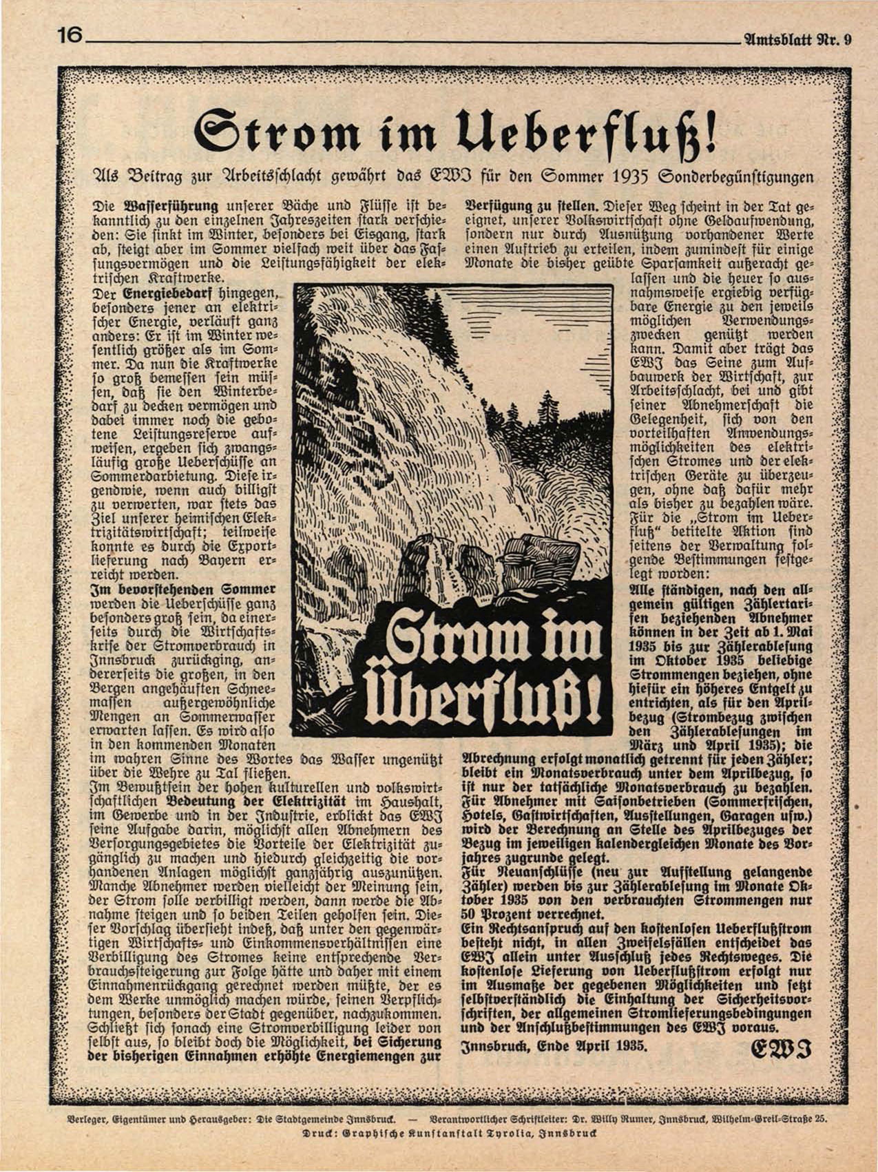Verleger, Eigentümer und Herausgeber: Hie Stadtgemeinde Innsbruck. — Verantwortlicher Schriftleiter: 2>r. Willy Rumer, Innsbruck, Wilhelm-Greil-Straße 25.