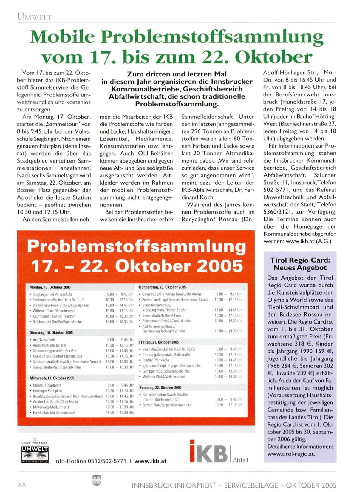 INNSBRUCK INFORMIERT - SERVICEBEILAGE - OKTOBER 2005